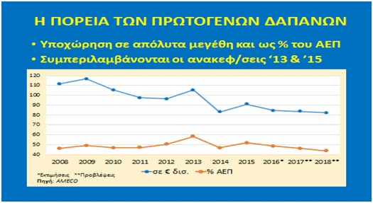 Δεύτερον, το περιβόητο «μείγμα οικονομικής πολιτικής» έχει υφεσιακή επίπτωση. Για την επίτευξη του στόχου ως προς ένα πρωτογενές πλεόνασμα 2,0 % του ΑΕΠ (2017), το βάρος πέφτει στην αύξηση των φορολογικών εσόδων κατά 2,5 δισ. ευρώ. Η μείωση δαπανώνβραδυπορεί. Όπως η ακαδημαϊκή έρευνα βεβαιώνει, περισσότερες μειώσεις δαπανών αντί αυξήσεων φόρων θα είχαν μικρότερη άμεση υφεσιακή επίπτωση γιατί οι αυξήσεις φόρων αποθαρρύνουν την εργασία και την επιχειρηματικότητα (από την πλευρά της προσφοράς) και επομένως θολώνουν τις προοπτικές ανάκαμψης.