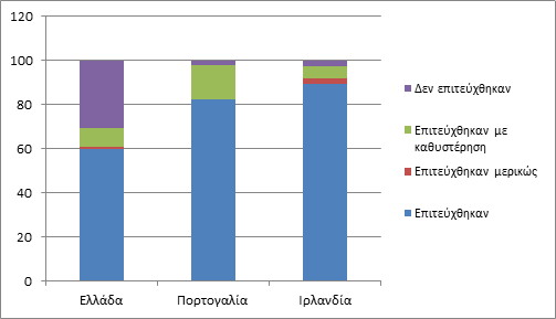Η εμπειρία της εφαρμογής των προηγούμενων δύο Μνημονίων καταδεικνύει την απόσταση ανάμεσα στην τυπική υιοθέτηση των μεταρρυθμίσεων και την αποτελεσματική εφαρμογή τους (βλέπε τον παρακάτω πίνακα). Σύμφωνα με περιοδική έκθεση του ΟΟΣΑ για τη χώρα μας (OECD Economic Surveys, 2016), η Ελλάδα εμφανίζει συγκριτικά το μικρότερο ποσοστό υλοποίησης μεταρρυθμίσεων ανάμεσα στις χώρες που κλήθηκαν να εφαρμόσουν προγράμματα προσαρμογής (70% στην Ελλάδα, έναντι 98% στην Πορτογαλία και 97% στην Ιρλανδία). Επιπρόσθετα, πάντοτε ελλοχεύει ο συχνός κίνδυνος της τροποποίησης ή ακόμη και της εγκατάλειψης των μεταρρυθμίσεων σε βάθος χρόνου (reform reversal).